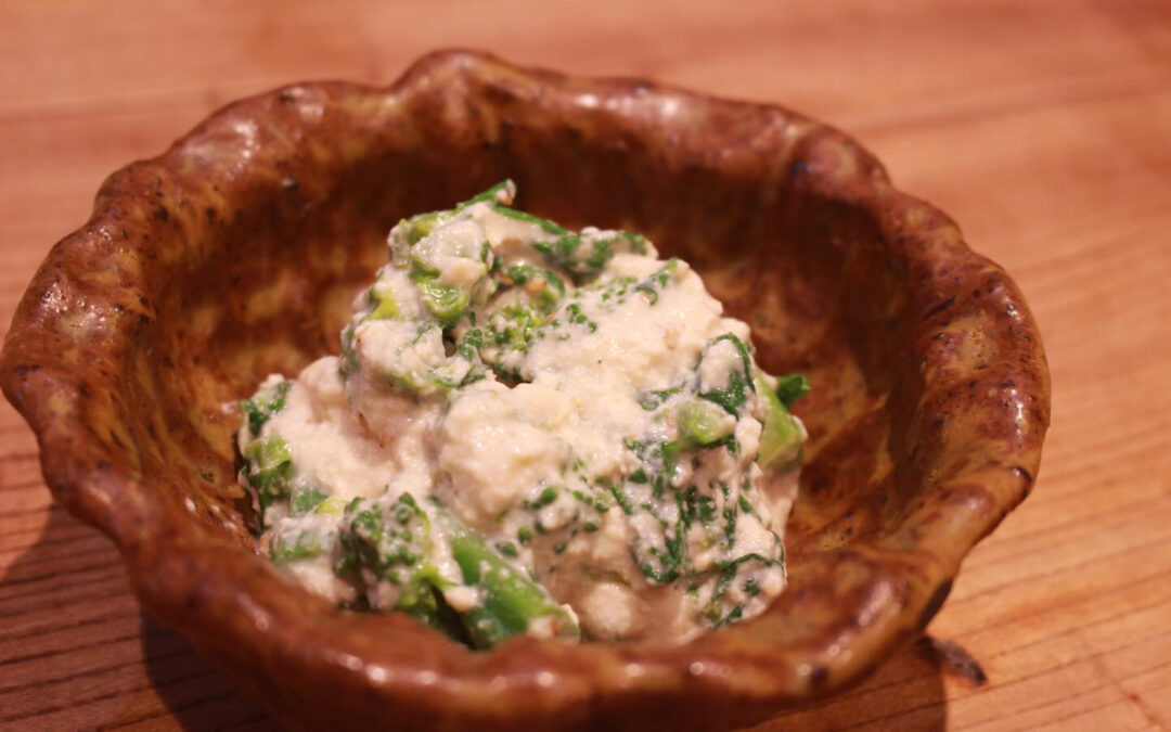 旬の菜の花をさっと塩茹でし自家製のお豆腐と白だしで味付けした優しい白和えを作りました。